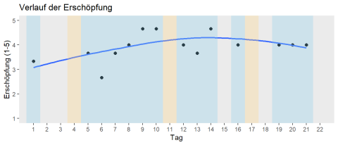 Individuelle Einblicke: Nach der Teilnahme erhalten Sie eine tagesgenaue Auswertung zu Faktoren wie Zeitdruck, Arbeitsunterbrechungen, sozialer Unterstützung und Erschöpfung. So erkennen Sie Entwicklungsmuster und Potenziale in Ihrem Arbeitsalltag.
