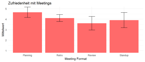 Abb.2: Für die Grafik wurden neun Angaben zu Plannings, neun zu Retrospektiven, 13 zu Reviews und 46 zu Standups verwendet.