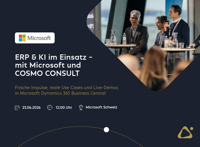 Gemeinsam mit Microsoft zeigt COSMO CONSULT, wie ERP, Daten und KI im Unternehmensalltag konkret eingesetzt werden können. Im Fokus stehen reale Use Cases, ein Praxis‑Beispiel aus dem Einkauf sowie eine Live‑Demo in Microsoft Dynamics 365 Business Central. Ergänzt wird der Nachmittag durch eine Einordnung, was in naher Zukunft relevant wird – und wie sich Unternehmen sinnvoll darauf vorbereiten können.