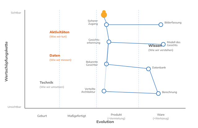 Was eine Wardley Map sichtbar macht: wie Abhängigkeiten in deiner Wertschöpfungskette funktionieren – wie Produkte und Technologien sich entlang von vier Phasen entwickeln – von der Entstehung über Individuallösung und Produkt bis zur Commodity – wo Risiken entstehen und wo Chancen verborgen liegen – welche Klimamuster dein Umfeld prägen und welche strategischen Spielzüge sich daraus ergeben
