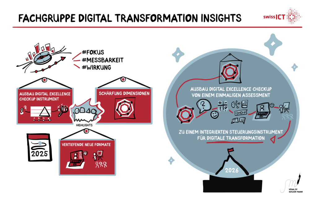 Für die Fachgruppe Digital Transformation Insights stand 2025 im Zeichen der Weiterentwicklung des swissICT Digital Excellence Checkup zu einem umfassenden Instrument für digitale Transformation.