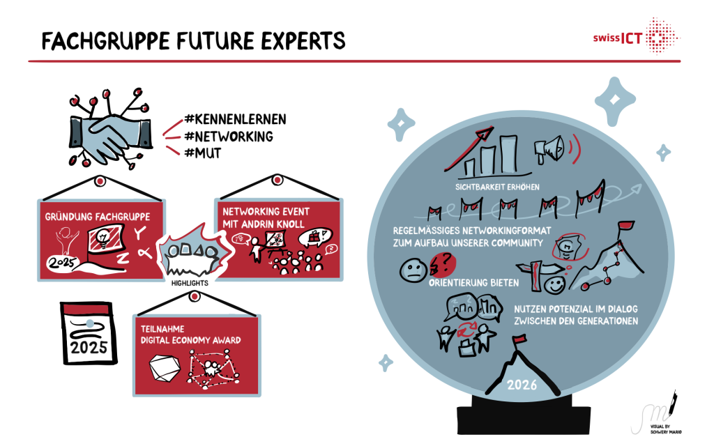 Ein zentrales Vorhaben ist die Etablierung eines regelmässigen Networking-Formats, das jungen IT-Fachkräften eine Plattform für Austausch, Orientierung und gegenseitige Unterstützung bietet. Ziel ist es, Verbindungen zwischen Nachwuchstalenten, Unternehmen und dem Verband zu stärken.