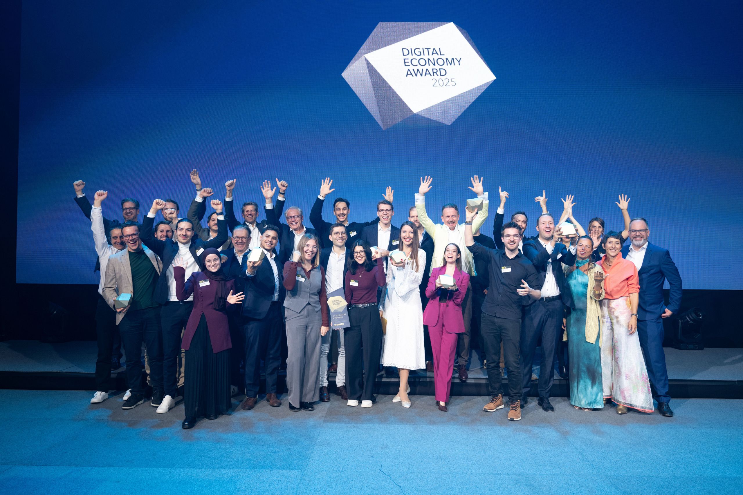 Der Digital Economy Award 2025 stand ganz im Zeichen von digitaler Souveränität, Innovation und Zukunftsgeist. Bereits der Vorevent zum Thema Cybersecurity brachte führende Stimmen aus Politik und Wirtschaft aus der Schweiz und Estland zusammen. Ein starkes Signal setzte die Keynote der estnischen Digitalministerin Liisa-Ly Pakosta, die die strategische Bedeutung konsequenter Digitalisierung eindrücklich aufzeigte. Am Abend wurde das Hallenstadion Zürich zur Bühne für die digitale Schweiz: Über 800 Entscheidungsträger:innen feierten gemeinsam mit Bundesrat Albert Rösti und Bundeskanzler Viktor Rossi herausragende Projekte, Unternehmen und Nachwuchstalente. Leidenschaft für Innovation, inspirierende Ideen und hochkarätiger Austausch machten den Abend zu einem eindrucksvollen Statement für die Stärke und Zukunftsfähigkeit des Schweizer ICT-Ökosystems.
