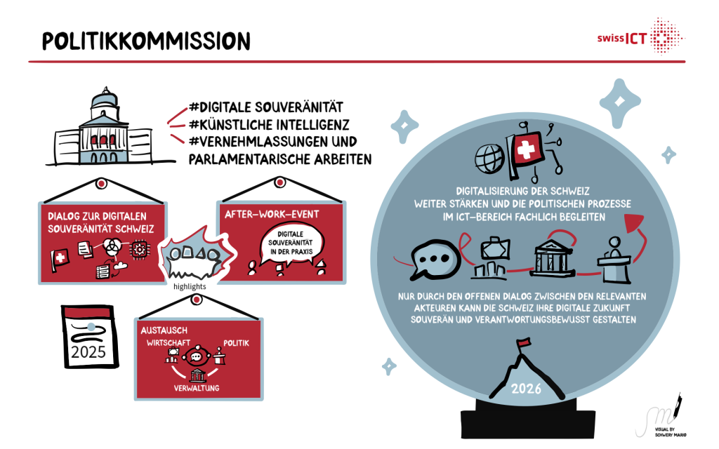 Im Jahr 2026 verfolgt die Politik-Kommission das Ziel, die digitale Transformation der Schweiz weiterhin aktiv zu begleiten und mitzugestalten.